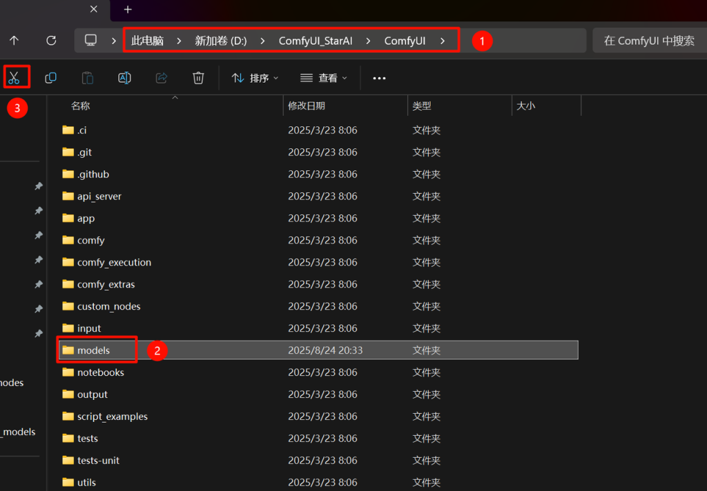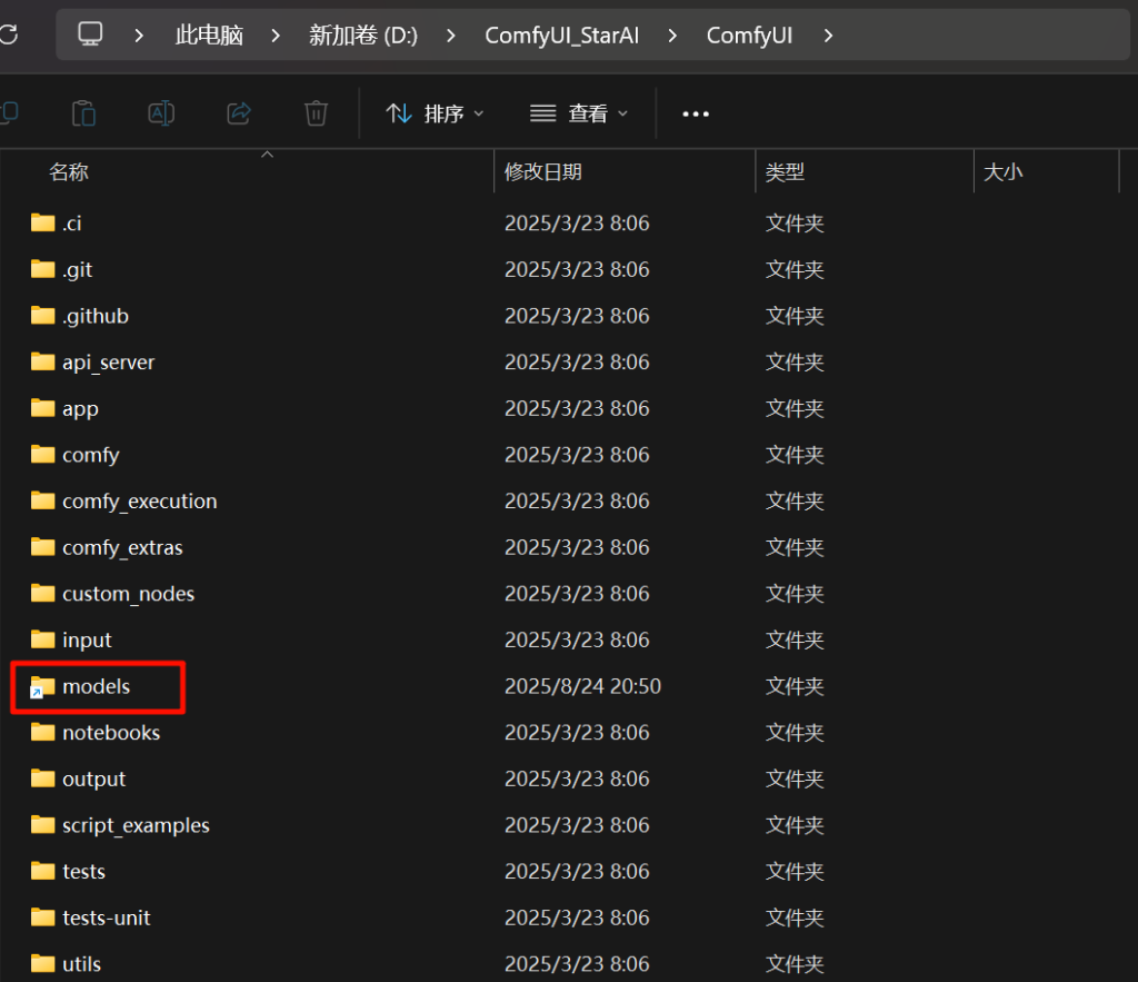 原模型路径:D:\ComfyUI_StarAI\ComfyUI\models