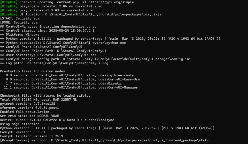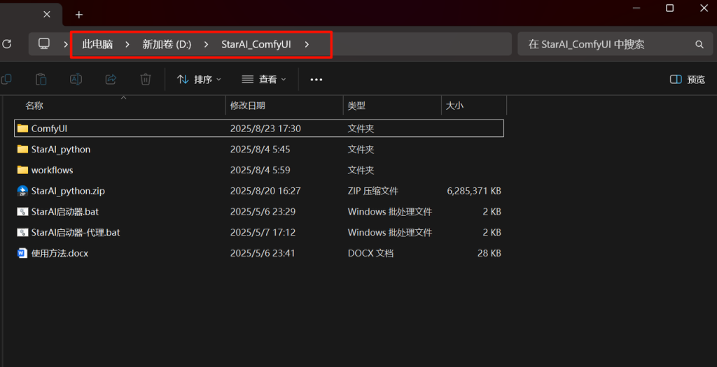 迁移模型路径:D:\ComfyUI_StarAI\ComfyUI\models官方整合包创建自定义python环境配置