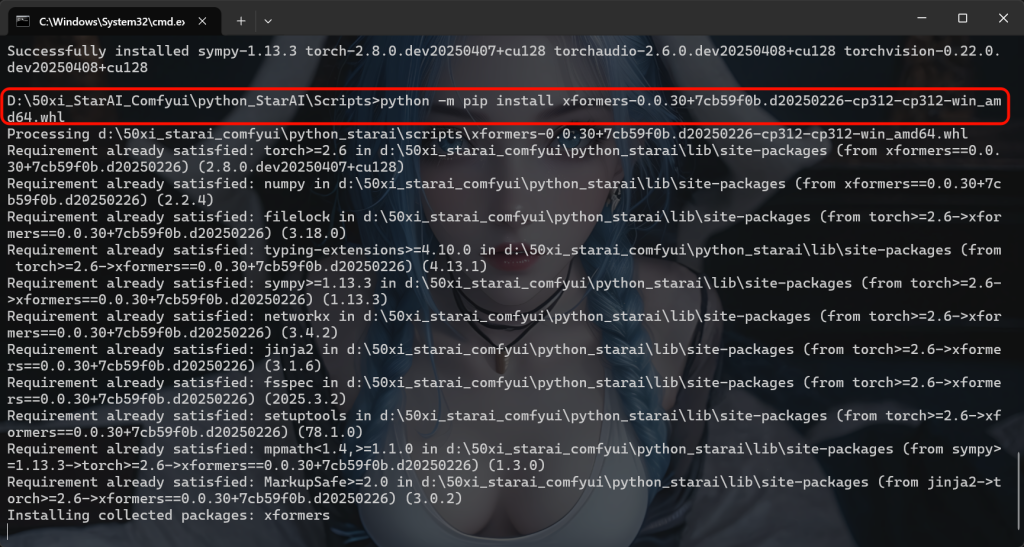 python -m pip install xformers-0.0.30%2B9a2cd3ef.d20250321-cp312-cp312-win_amd64.whl