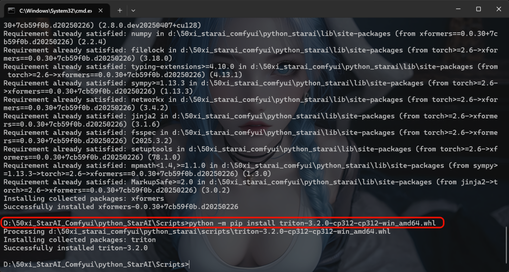 python -m pip install triton-3.2.0-cp312-cp312-win_amd64.whl