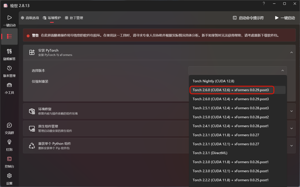 - “G:\ComfyuI\python\python.exe” -m pip install torch==2.6 torchvision==0.21 torchaudio==2.6
