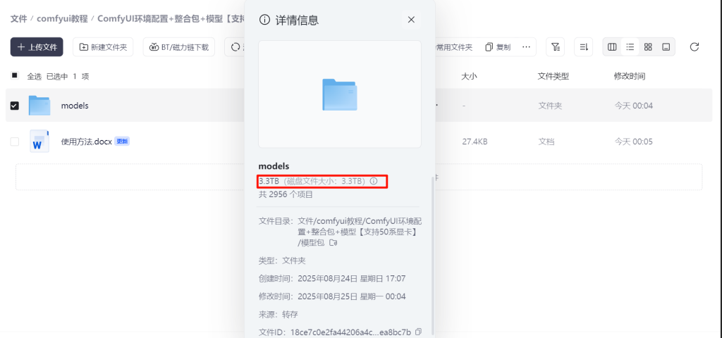 直接到网盘中找到所需模型下载到此路径中:D:\ComfyUI_StarAI\ComfyUI\models